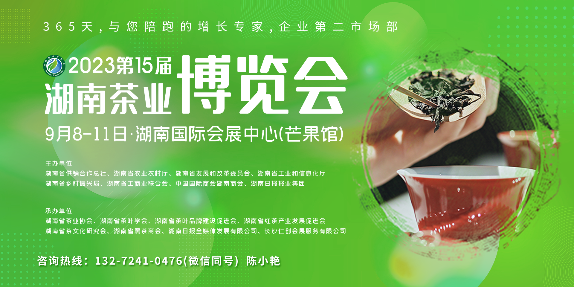 2023第十五屆湖南茶業(yè)博覽會9月8-11日·湖南國際會展中心(芒果館)主辦單位湖南省供銷合作總社、湖南省農(nóng)業(yè)農(nóng)村廳、湖南省發(fā)展和改革委員會、湖南省工業(yè)和信息化廳、湖南省鄉(xiāng)村振興局、湖南省工商業(yè)聯(lián)合會、中國國際商會湖南商會、湖南日報報業(yè)集團承辦單位湖南省茶業(yè)協(xié)會、湖南省茶葉學會、湖南省茶葉品牌建設(shè)促進會湖南省紅茶產(chǎn)業(yè)發(fā)...···